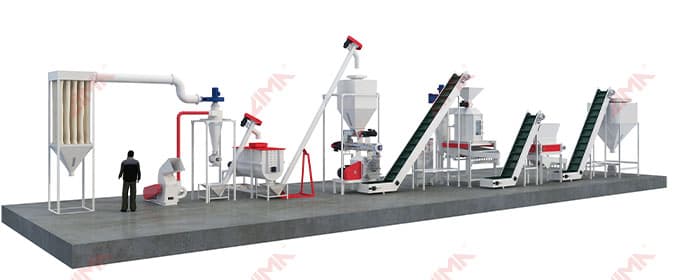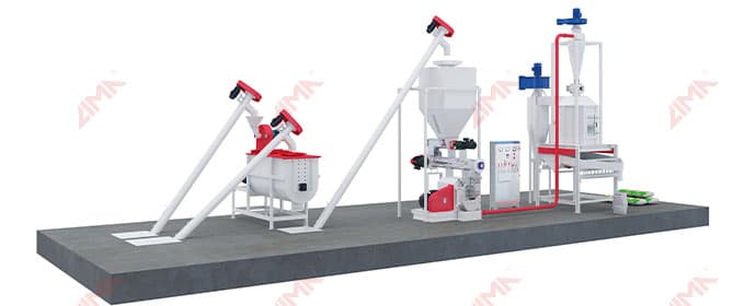 Main Equipment: Crusher; Feed mixer; ring die pellet machine; Cooling equipment; Packaging equipment; Screw conveyor; etc.